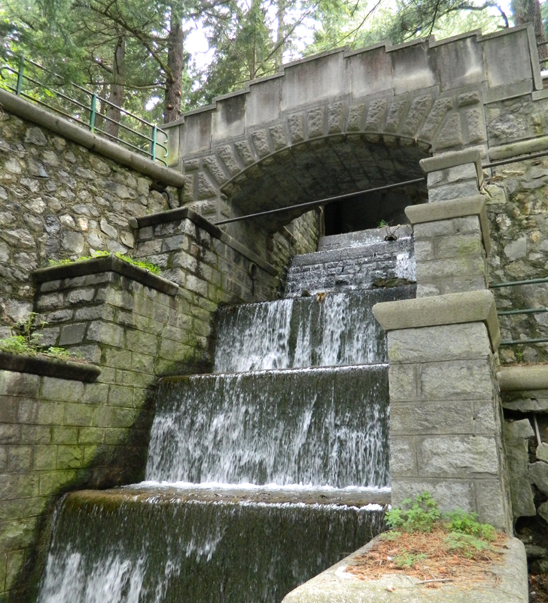 10. Giardino del ponte: inoltrandosi nel percorso naturalistico che dalla rotonda con pergolato del padiglione chirurgico giunge fino ai giardini dell’VIII e IX padiglione, si attraversa un ponticello sul torrente Rio, sistemato in questo tratto con briglie che formano una pittoresca sequenza di cascate. Il ponte ha un andamento a gradoni, ed è chiamato da molti “ponte giapponese”, in richiamo al celebre dipinto di Claude Monet. 10. Bridge garden: venturing into the naturalistic path starting from the rotunda with pergola at the surgical pavilion and arriving to the VIII and XI pavilions gardens, you cross a small bridge on Rio creek, whose bed has settled with basin weirs forming a picturesque series of waterfalls. The brige has built in steps and it is called “Japanese bridge”, evoking the famous painting by Claude Monet.