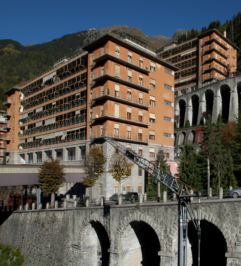 This sort of titanic alpine “New Town” gives an original and spectacular overview on the “Sanatorium theatre” that replaced the former agricultural and forestry order with an unprecedented and incredible modern landscape, nowadays still considered unbeaten example of high construction quality and effective, modern interpretation of “genius loci” concept.